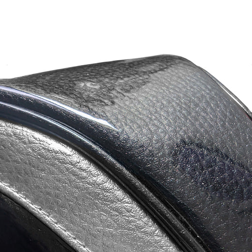 Gloss black driver headcover with refined silver detailing and a premium leather-textured finish. Executive styling suited to premium retail enviro...