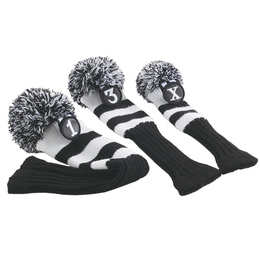 Retro Striped Pom Pom Head Covers. Sold Individually in Driver, Fairway and Hybrid varieties. Available in Black & White, Red & White and B...
