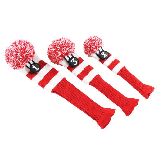 Retro Striped Pom Pom Headcover collection. Includes: 3x covers suitable for Driver, Fairway wood and Hybrid