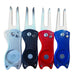 The ultimate golf flick pitch repairer bundle with a sleek and robust display stand holding 48 repairers. The tools are crafted from premium quality steel divot prongs that spring into action at the press of a button. This unique mechanism allows for compactness when not in use. Available in a variety of vibrant colors with a magnetic metal ball marker slot, providing convenient access to your marker whenever you need it.